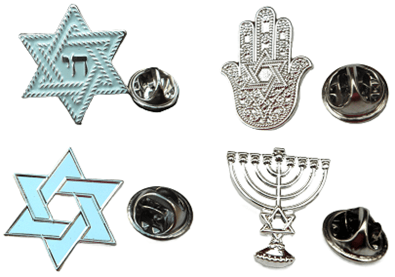 4 x QUALITY BRAND NEW JEW PIN BADGES AS ILLUSTRATED.