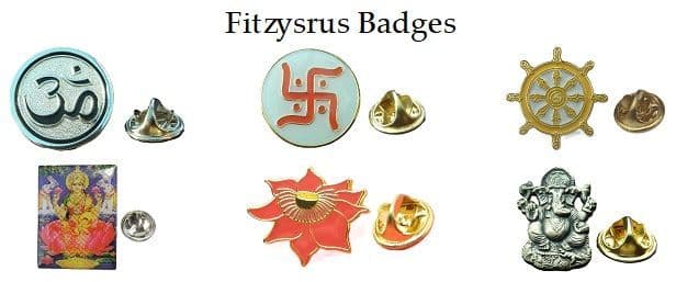6 x QUALITY BRAND NEW HINDU PIN BADGES AS ILLUSTRATED.