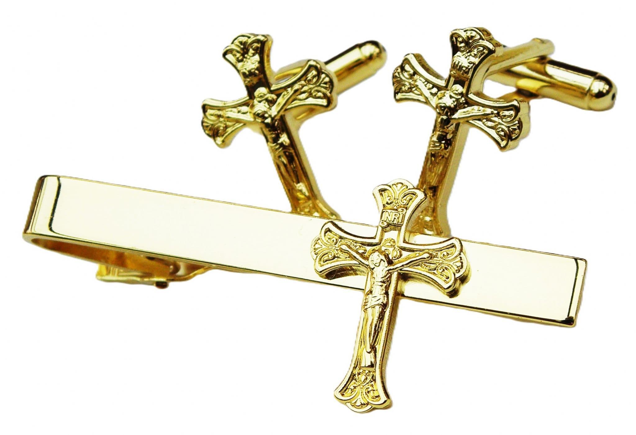 Pair of Crucifix cuff links & tie bar set as illustrated.