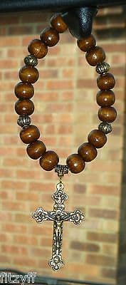 In-car wooden beads and gold-tone Crucifix pendant that hangs from your internal car mirror.