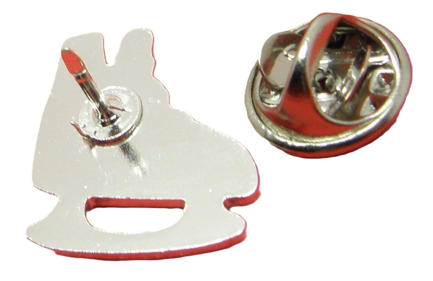 Badge measures approx 18mm x 16mm & comes with a metal squeeze clamp to hold it in place at the back.