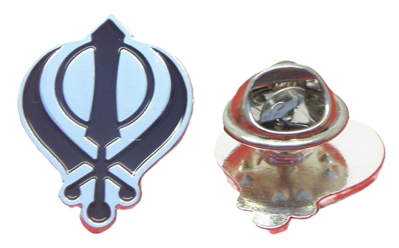 Khanda pin badge as illustrated.