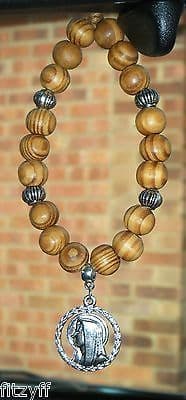 In-car wooden beads and Mary Mother of Jesus pendant that hangs from your internal car mirror.