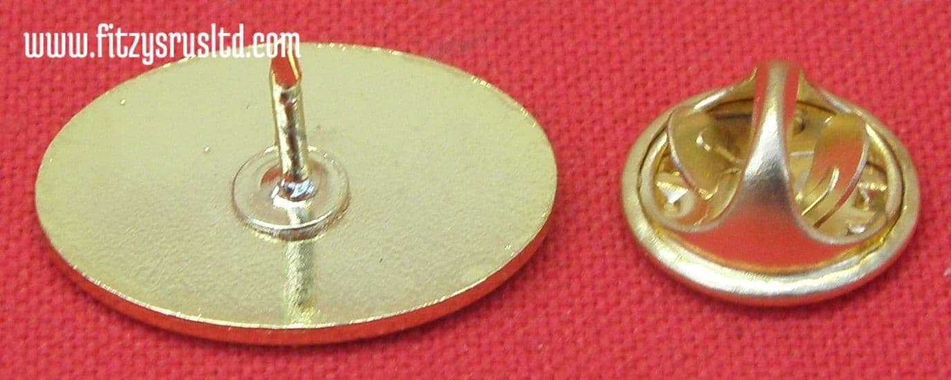 Metal pin badge measures approx: 20mm x 15mm and comes with a metal squeeze clamp to hold it in place at the back.