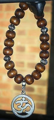 In Car Om / Aum pendant and wooden beads that hang from your internal car mirror as illustrated.